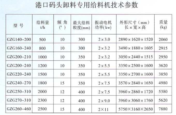 港口码头卸料专用系列给料机是在普通GZG系列给料机基础上,结合港口码头物料卸载特点研制开发的系列给料机,适用于港口码头卸载各种物料,给料机槽体通常采用向下倾角安装,倾角10~15℃,给料机安装有不同形式的衬板:不锈钢衬板、橡胶陶瓷复合衬板、Q345B低合金耐磨衬板等,减振弹簧多采用天然橡胶减振弹簧,对不同性质的物料给料适应性强,给料量大,给料均匀、稳定,设备结构简单,安装使用和维修方便,能耗低,效率高,噪音低。