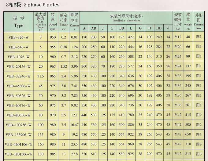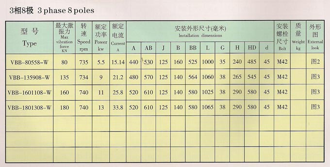 VBB系列隔爆型振动电机,功率0.2~13KW,2、4、6、8极,激振力为3~180KN,共计25个规格。