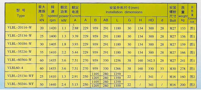 VLB、VLBL系列户外隔爆振动电机,功率1.1~3.6KW,4极,激振力为20~60KN,共计14个规格。广泛应用于油田、矿山、化工等行业。
