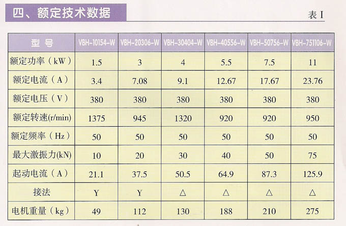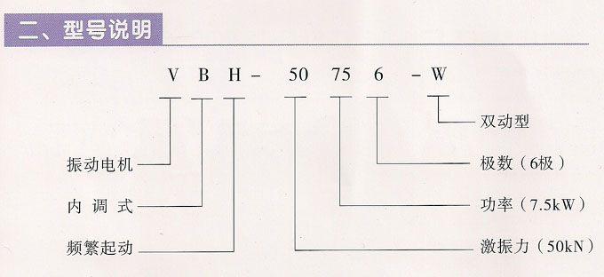 VBH系列频繁起动振动电机,功率1.5~11KW,4、6极,激振力为10~75KN,共计6个规格。